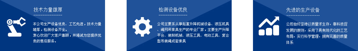 泰州市如意機械設(shè)備有限公司,座落在中國海軍誕生地江蘇泰州市,緊連328國道,東有鐵路相連,同時有滬寧、寧通高速公路相交,地理位置十分優(yōu)越,自然環(huán)境得天獨厚。 本公司系從事起重升降機械設(shè)備、液壓機具、繩網(wǎng)吊索具生產(chǎn)的專業(yè)廠家,主要生產(chǎn)千斤頂、液壓拉馬、軸承加熱器、升降平臺、裝卸機械、液壓工具、電動工具、復合型吊裝繩成套索具、高強纖維柔性吊裝帶、起重鏈條成套索具、橫梁吊具、注塑繩、軟梯、安全帶、安全網(wǎng)等幾大系列、上百種規(guī)格的產(chǎn)品,廣泛應用于電力、油田、大型鋼廠、機電、化工、航空、冶金、機械、鐵道、造紙、港口、建筑等領(lǐng)域。 本公司生產(chǎn)設(shè)備優(yōu)良、工藝先進,技術(shù)力量雄厚,檢測設(shè)備齊全,其中升降平臺、千斤頂、吊具、加力扳手、液壓矩扳手經(jīng)泰州質(zhì)量技術(shù)監(jiān)督局監(jiān)督檢驗 ...[點擊詳情] |